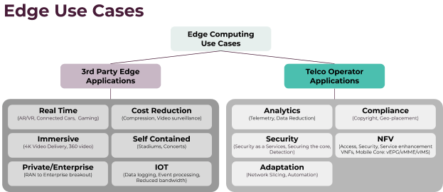 As you can see here, we can roughly divide edge use cases into third party applications and telco operator applications.Third party applications are those that are more likely to be accessed by end users, such as providing wireless access points in a public stadium, connected cars, or on the business end, connecting the enterprise to RAN.