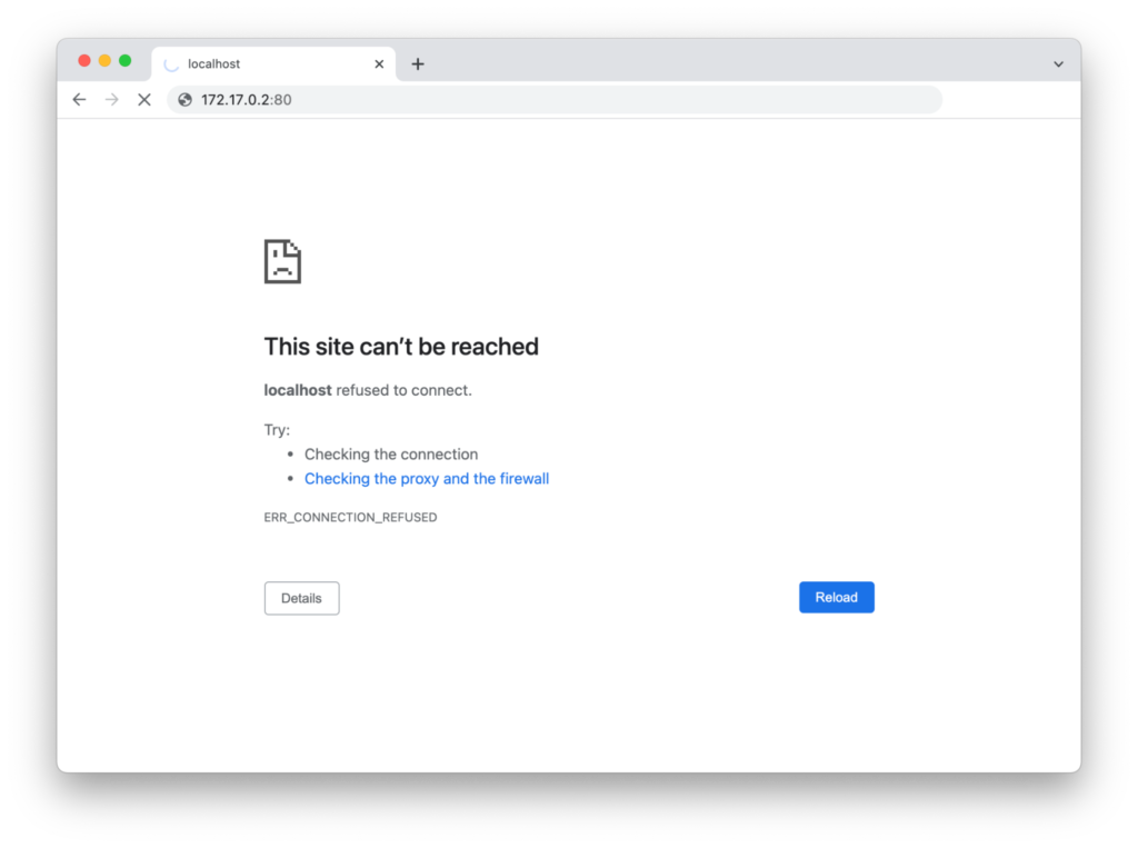 Hmm. Well, what if we look up the IP address of the container and try to access it that way?
