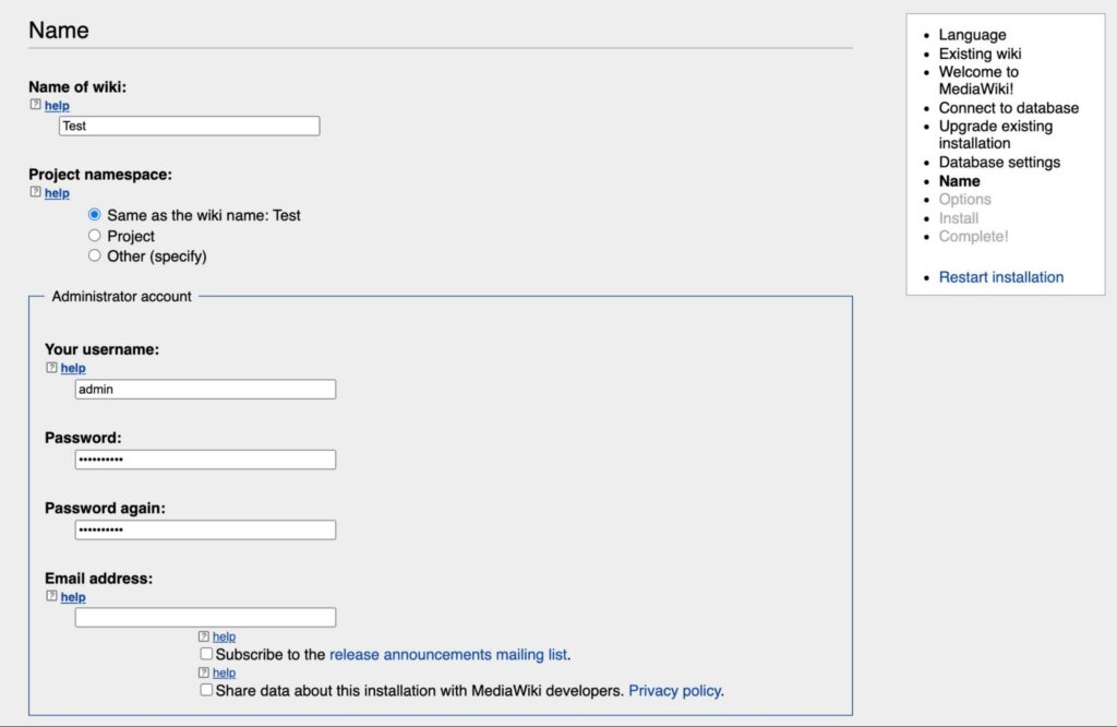 Finalize your administrator information, and then go through the installation process.