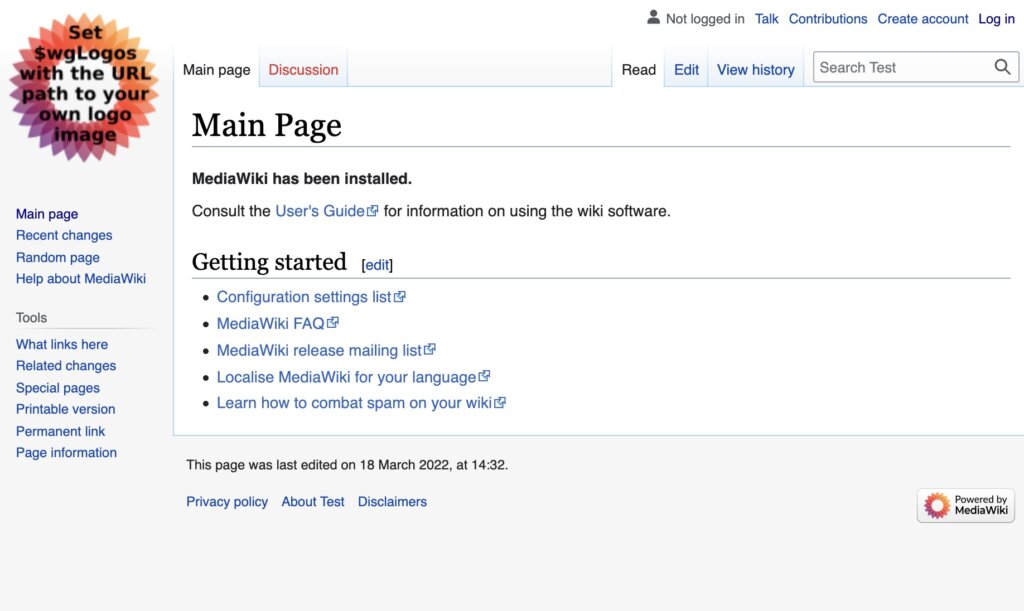 Like last time, you’ll need to download the generated LocalSettings.php file and include it in the base directory of the wiki app. (You can review the instructions from the last lesson if you need some reminders on this process.) Then we’ll commit our updated image and start a new container.