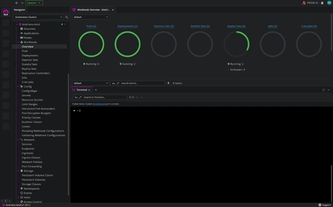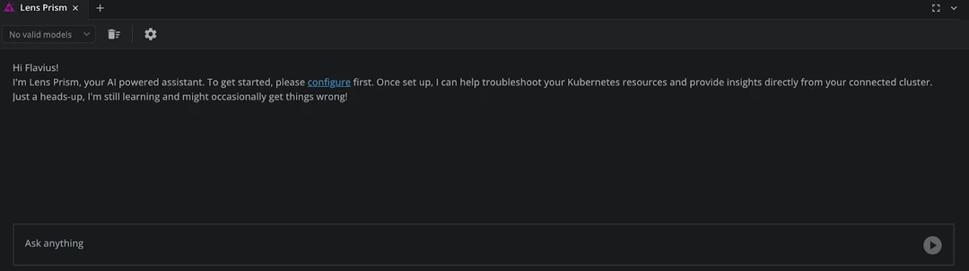 Lens Prism is a first-class citizen inside of Lens K8S IDE. It gives you the ability to manage and troubleshoot K8s clusters using natural language prompts, rather than requiring you to use kubectl or inspect everything in Lens K8s IDE.