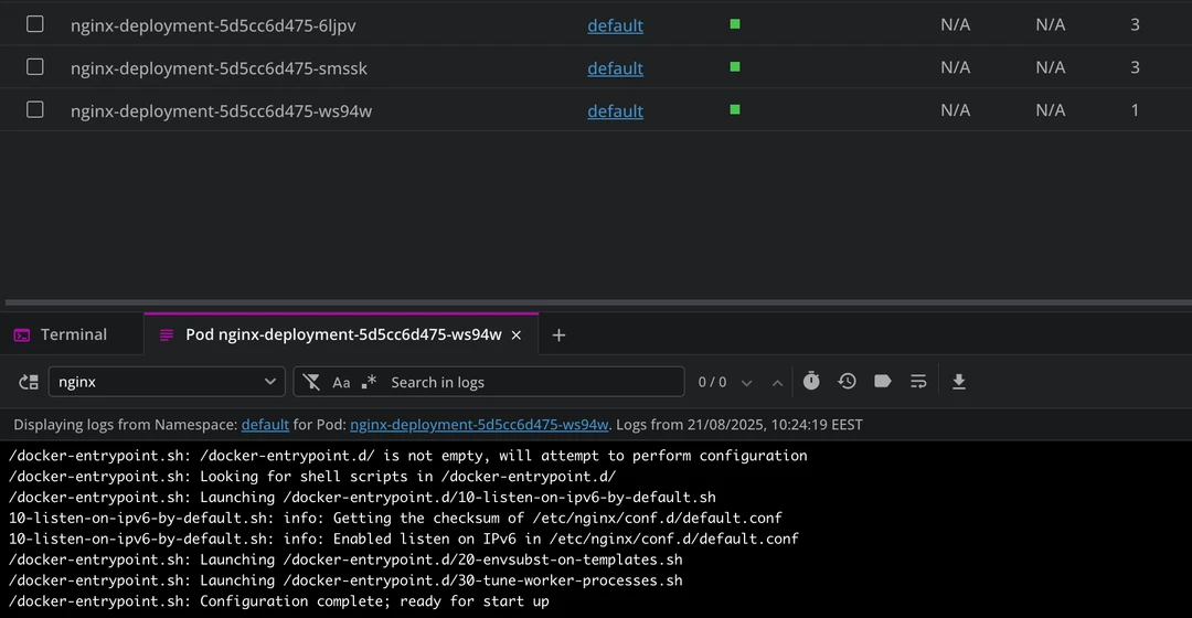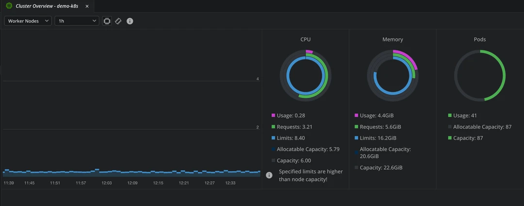 kubectlcommands without leaving the appLive resource monitoring: you get real-time status updates for pods, CPU/memory usage, logs, and events