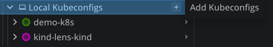 On the other hand, if you want to add other K8s cluster manually, you can easily do that by clicking on the + Add Cluster, near the the Local Kubeconfigs: