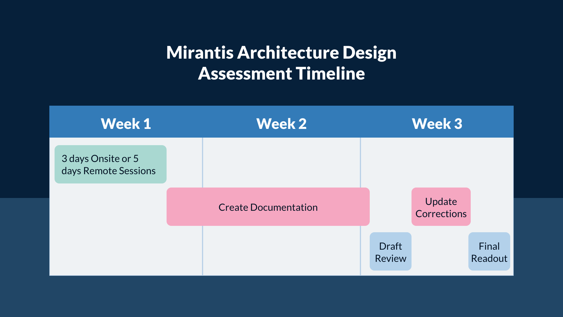By the end of the ADA, the customer was impressed by Mirantis’ deep expertise and thorough architectural plan, which showed that Mirantis fully understood their requirements. They appreciated Mirantis’ willingness to accommodate their needs and felt confident to move forward with a pilot deployment.