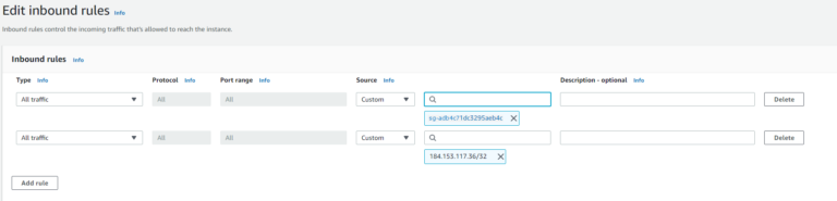 The illustration below shows such a simple security group in the AWS Security Group console: