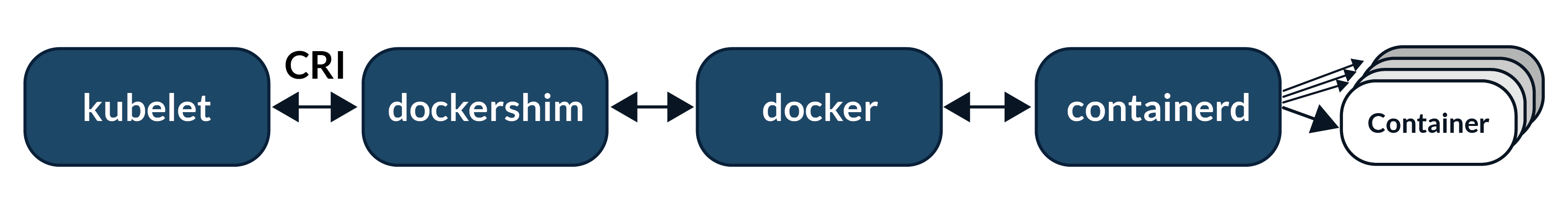 Originally, Docker Engine was integrated directly with the kubelet code. Once the Kubernetes system moved to use the CRI abstraction layer, there was a complication: Docker Engine pre-dated CRI, and so of course it didn’t conform to the CRI’s standards. To solve the problem, the project added a new component called dockershim that would act as an adapter between the CRI and Docker Engine.