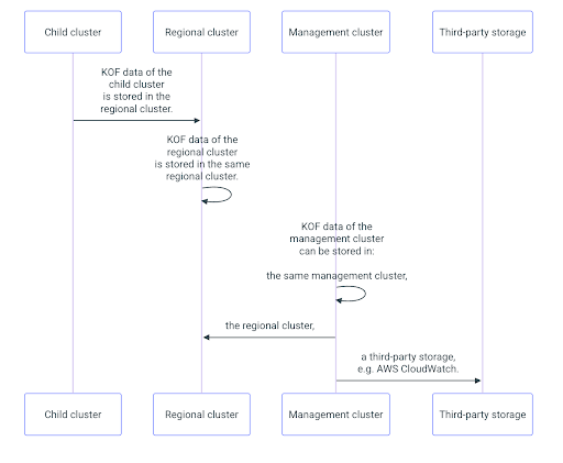 KOF data (metrics, logs, traces) can be collected from each cluster and stored in specific places: