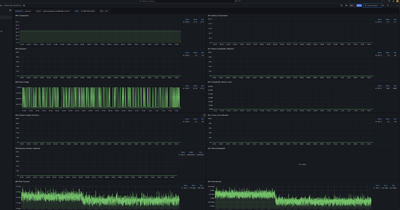 Out-of-the-box Grafana dashboards provide real-time GPU utilization metrics for workloads running on NVIDIA-powered nodes. This is especially useful for AI/ML environments where GPU resources must be carefully tracked and optimized.
