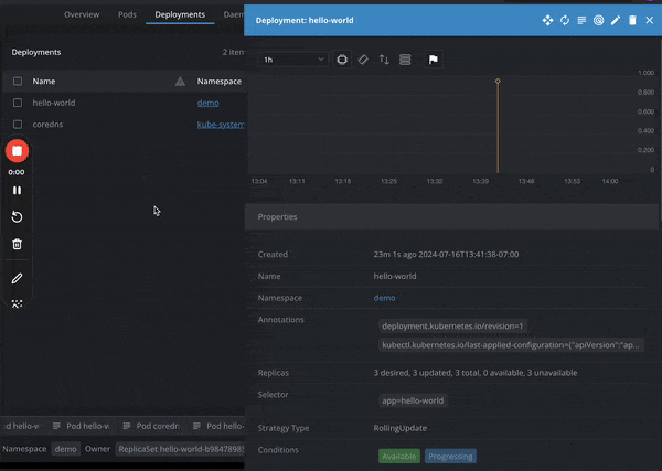 Troubleshooting Kubernetes deployments in Lens is intuitive and straightforward. Follow these steps to identify and resolve issues: