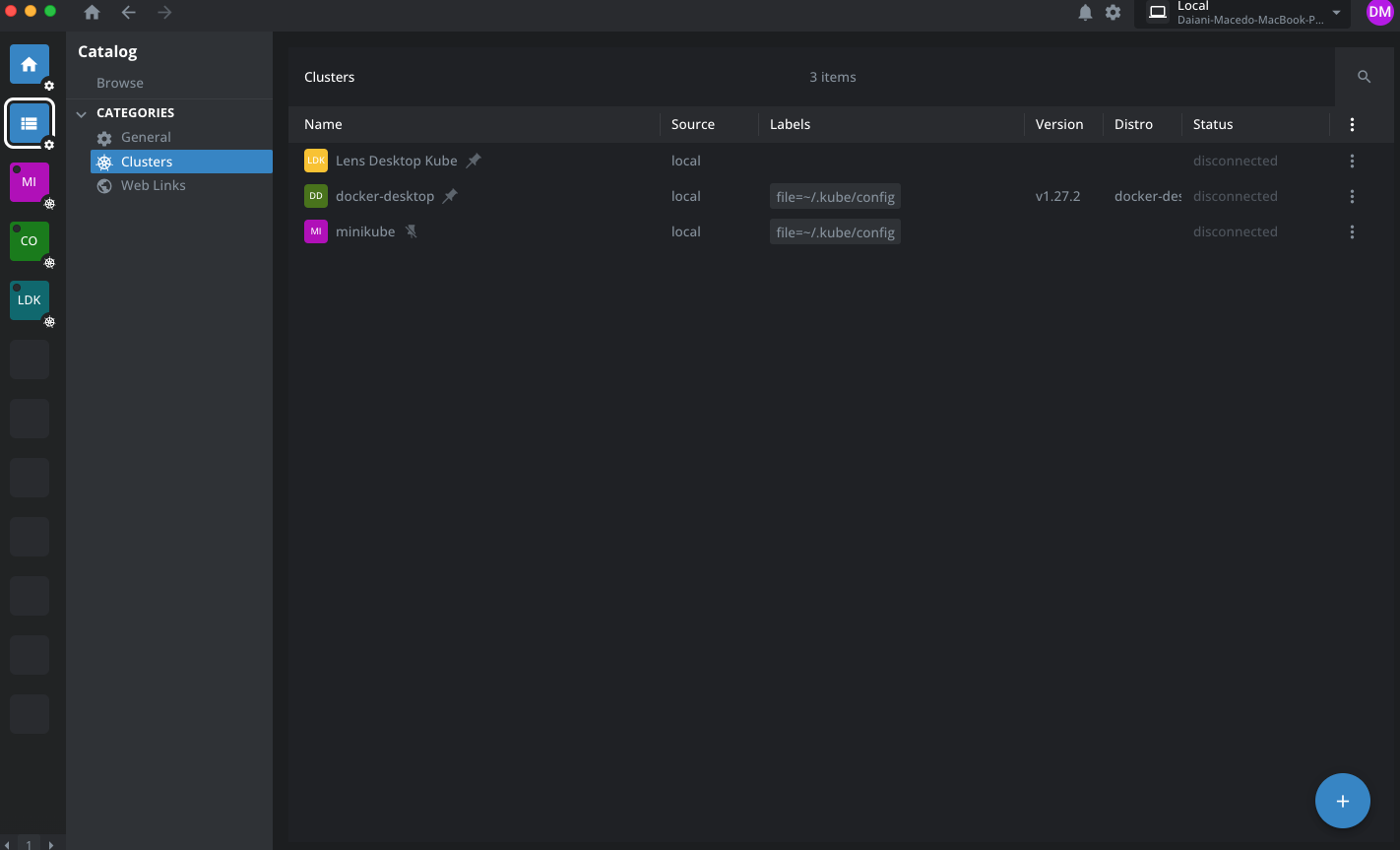 To start monitoring your workloads, open Lens Desktop and navigate to the "Catalog" on the home screen. Here, you will find "Clusters", where you can view and select your Kubernetes clusters. This unified view helps you manage multiple clusters from a single interface, simplifying the complexity of Kubernetes management.