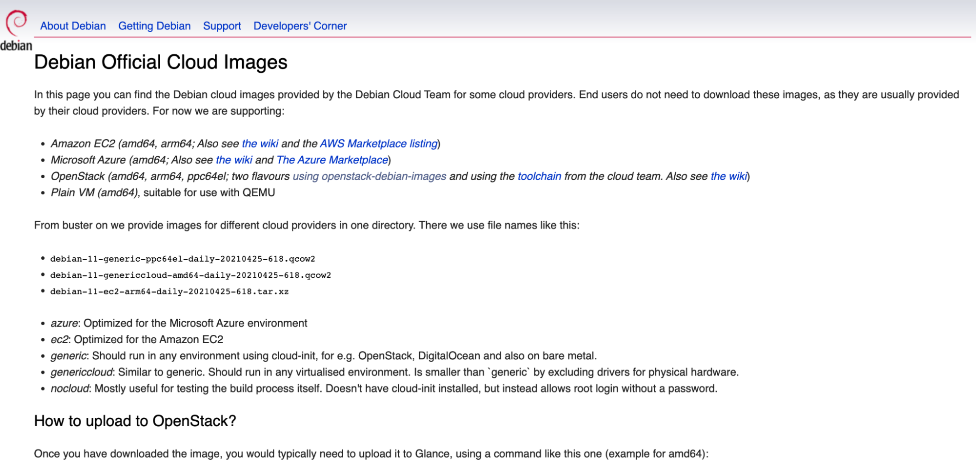 In either case, you can download the images to your local machine and then upload them into OpenStack, but we recommend simply uploading cloud-ready images into OpenStack directly from the provider’s website. To do this, right click on the image link of the architecture you wish to upload and copy the URL. Use this as the “Image Location” when you are performing the Upload Image process as per the Upload image to OpenStack section.