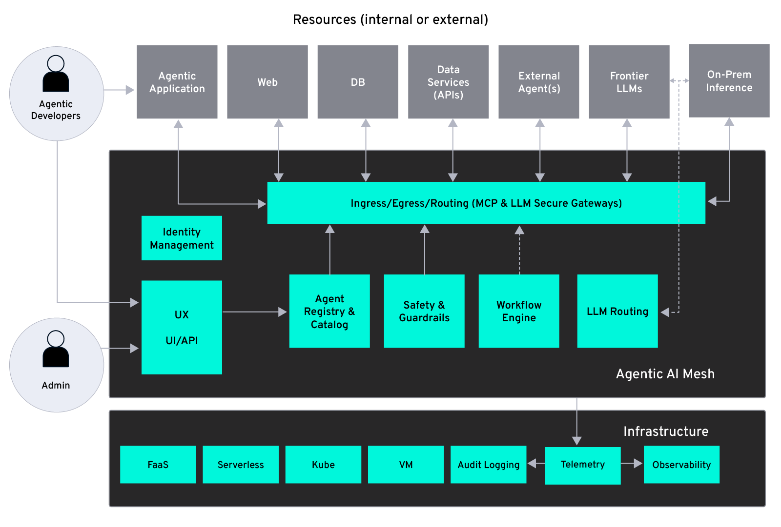 The agentic AI mesh is a composable, distributed, and vendor-agnostic architectural paradigm that enables [agents] to [act autonomously] across a wide array of systems, tools, and language models—securely, at scale, and built to evolve … At the heart of this paradigm are five mutually reinforcing design principles: